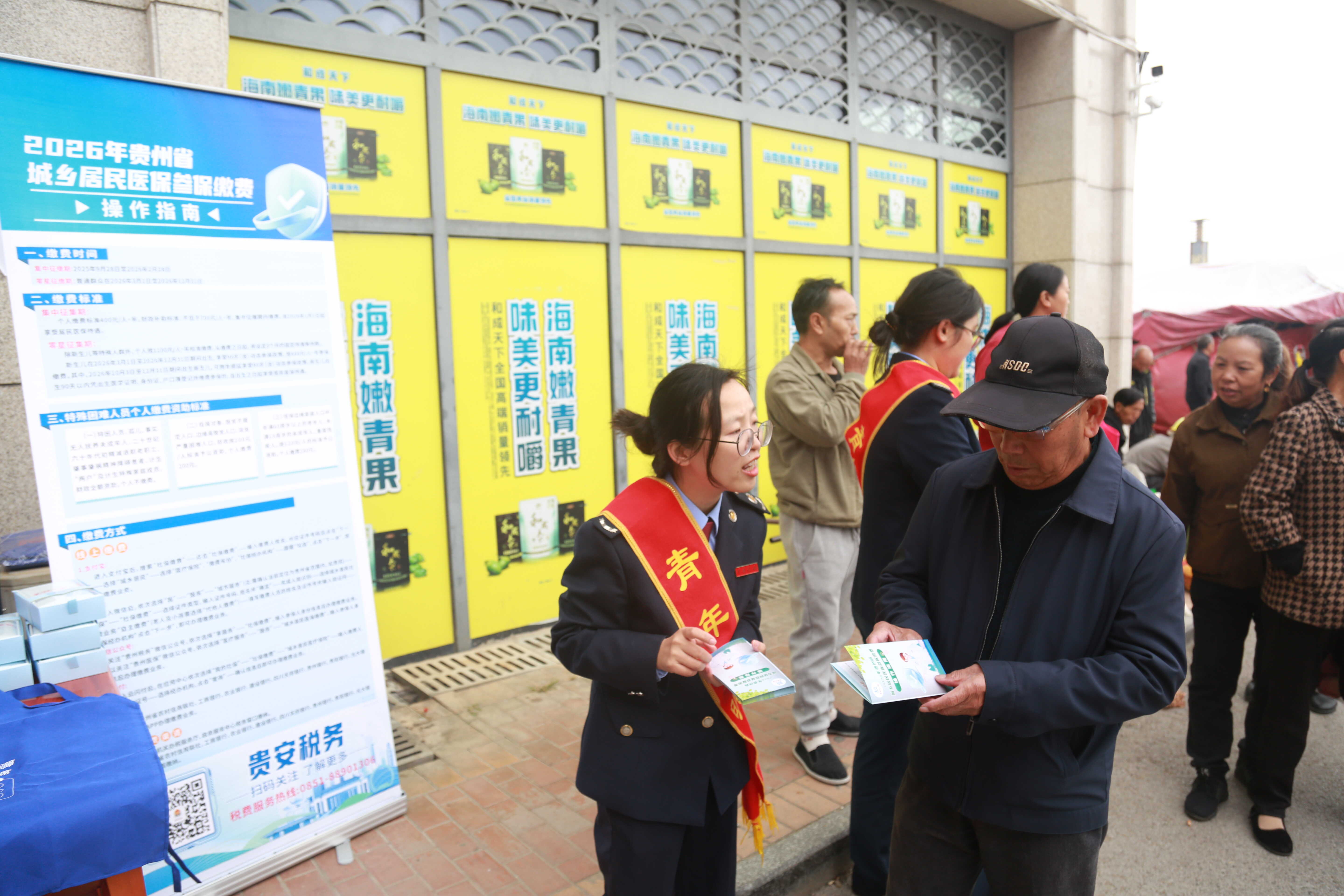 近日,贵安新区税务局组织业务骨干赴中八社区开展2026年度城乡居民医保参保缴费宣传“进社区”活动。
