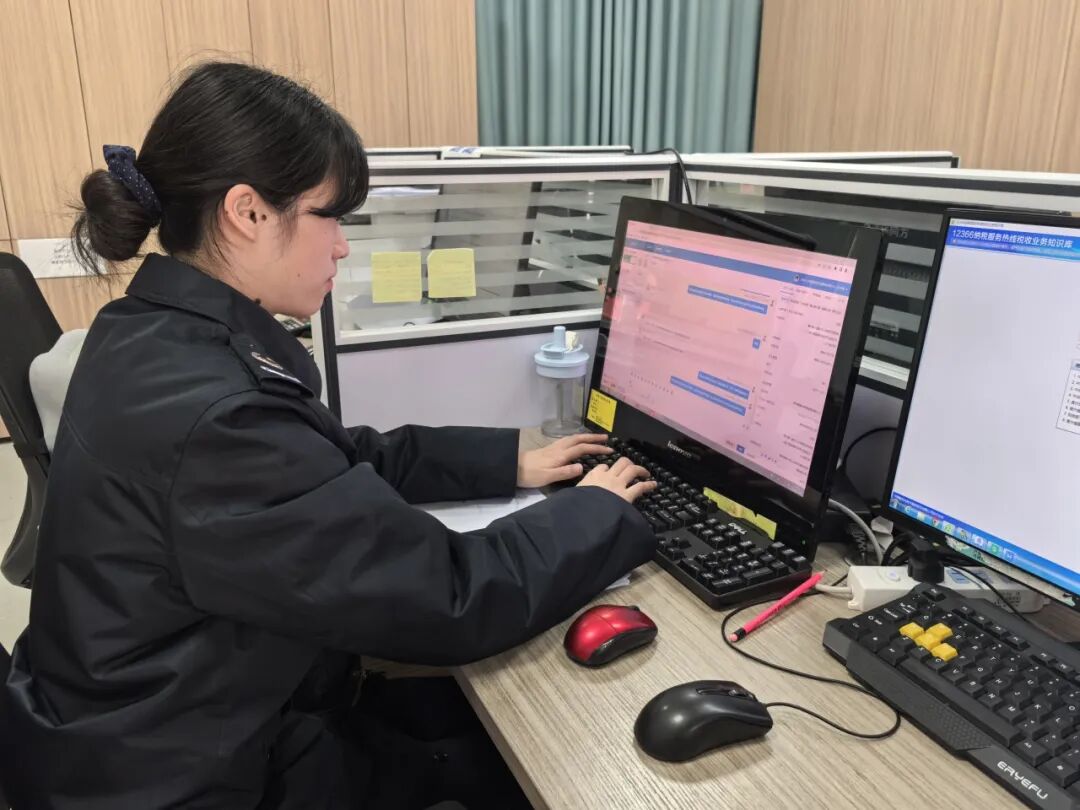 图为征纳互动坐席人员辅导纳税人线上办理跨区迁移事项(吴蓉/摄)