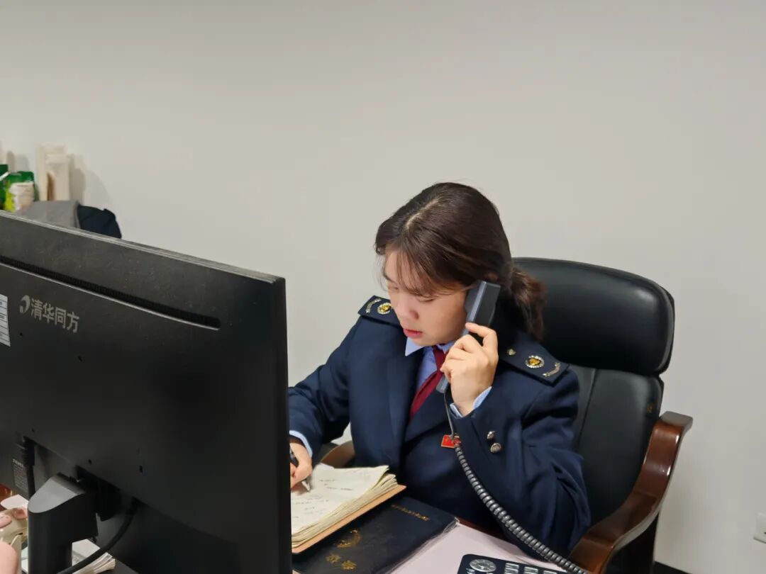 图为税务坐席通过“小星”热线回答社保缴费问题(黎亭瑶/摄)