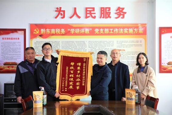 11月14日,施秉县马溪乡马溪村党支部书记、村委会主任王代明与州局派驻马溪村第一书记谌鸿润一行专程到州局,就马溪村2025年度工作情况进行专题汇报,并代表马溪村全体村民对州局长期以来倾心倾力的帮扶表示诚挚感谢,赠送写有“情系乡村办实事,帮扶百姓促发展”字样的锦旗。这面锦旗不仅承载着马溪村干部群众的深厚情谊,更是对州局真情帮扶、务实担当工作作风的高度认可和生动写照。