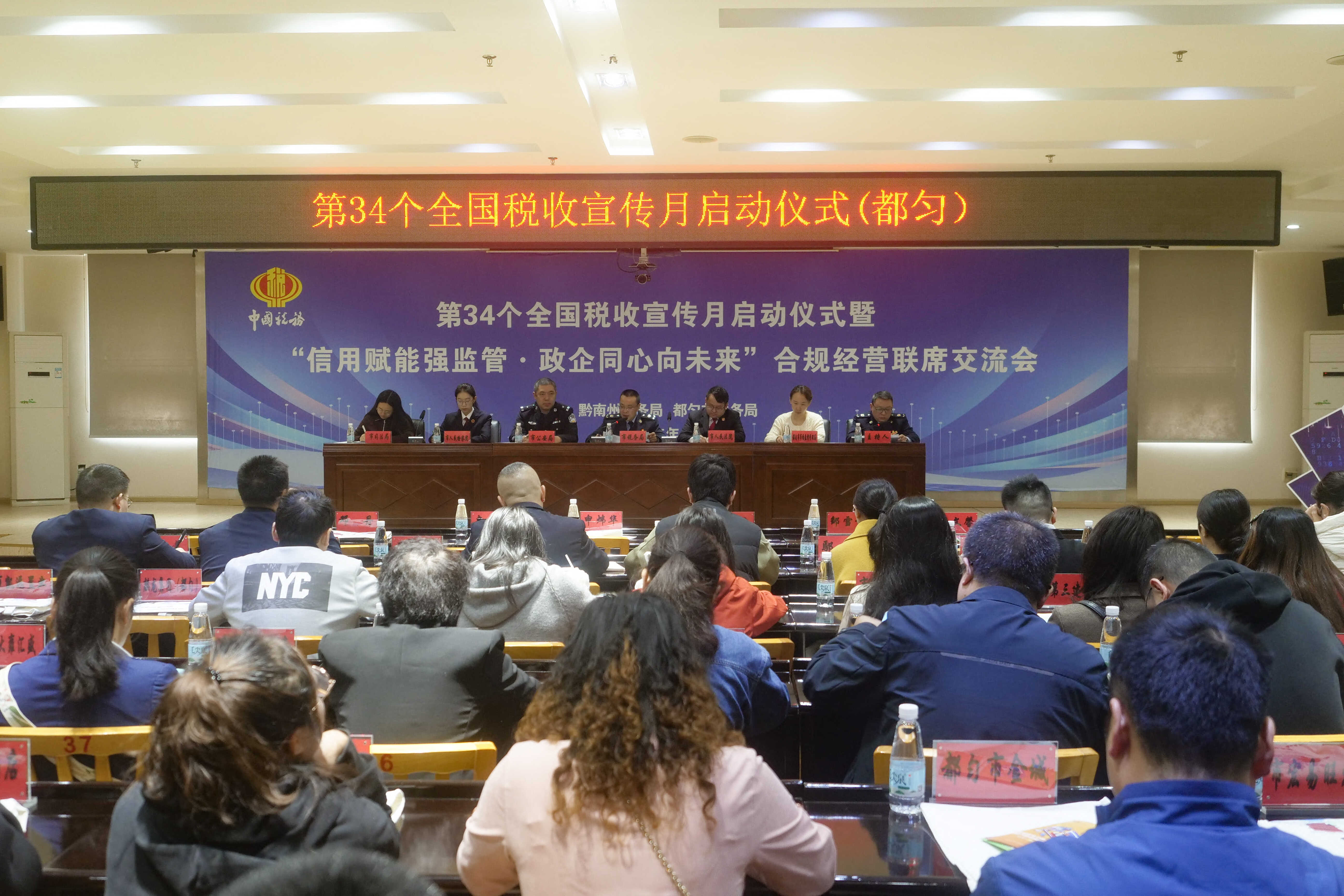 为充分凝聚各方税收共治合力,增强市场主体合规经营意识,在第34个全国税收宣传月来临之际,都匀市税务局、市公安局、市人民检察院、市人民法院、市司法局、市市场监督管理局联合开展第34个全国税收宣传月启动仪式暨“信用赋能强监管·政企同心向未来”合规经营联席交流会,辖区内42户企业和个体工商户代表参加了活动。