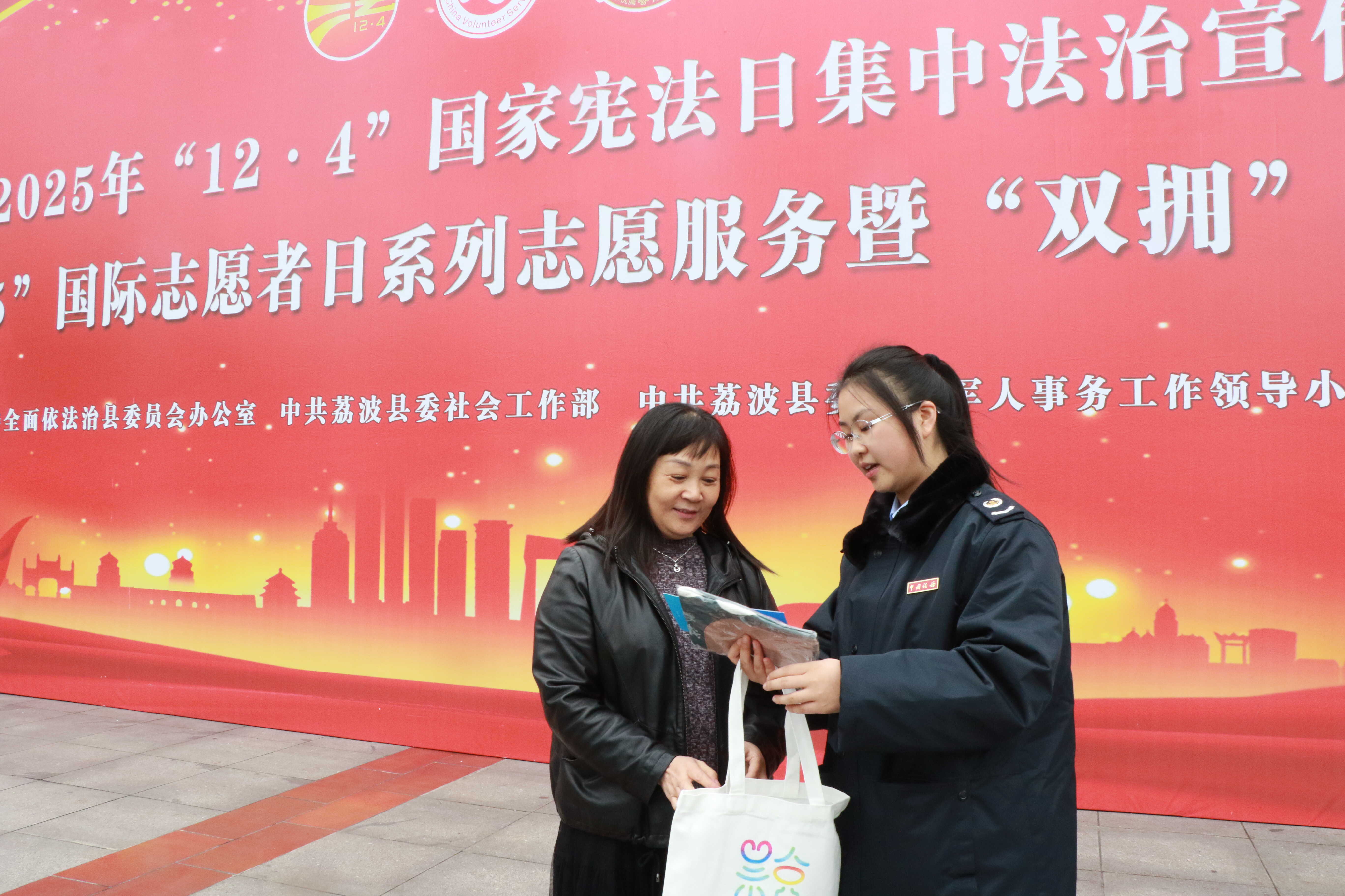 为深入学习宣传宪法,进一步提升辖区群众的宪法意识和法治观念,积极引导广大社会群众做“法律明白人”,12月5日,国家税务总局荔波县税务局以第八个“宪法宣传周”为契机,与县委依法治县办、县委社工部等各县直部门联合开展国家宪法日集中法治宣传暨“12·5”国际志愿者系列志愿服务活动,通过宪法与税法融合宣传,以“摆摊宣法”“流动答疑”“送资料包”等多种形式,将法治宣传的触角延伸到最贴近群众生活的“赶集场”,让冬日的“烟火气”增添了浓浓的法治温度。