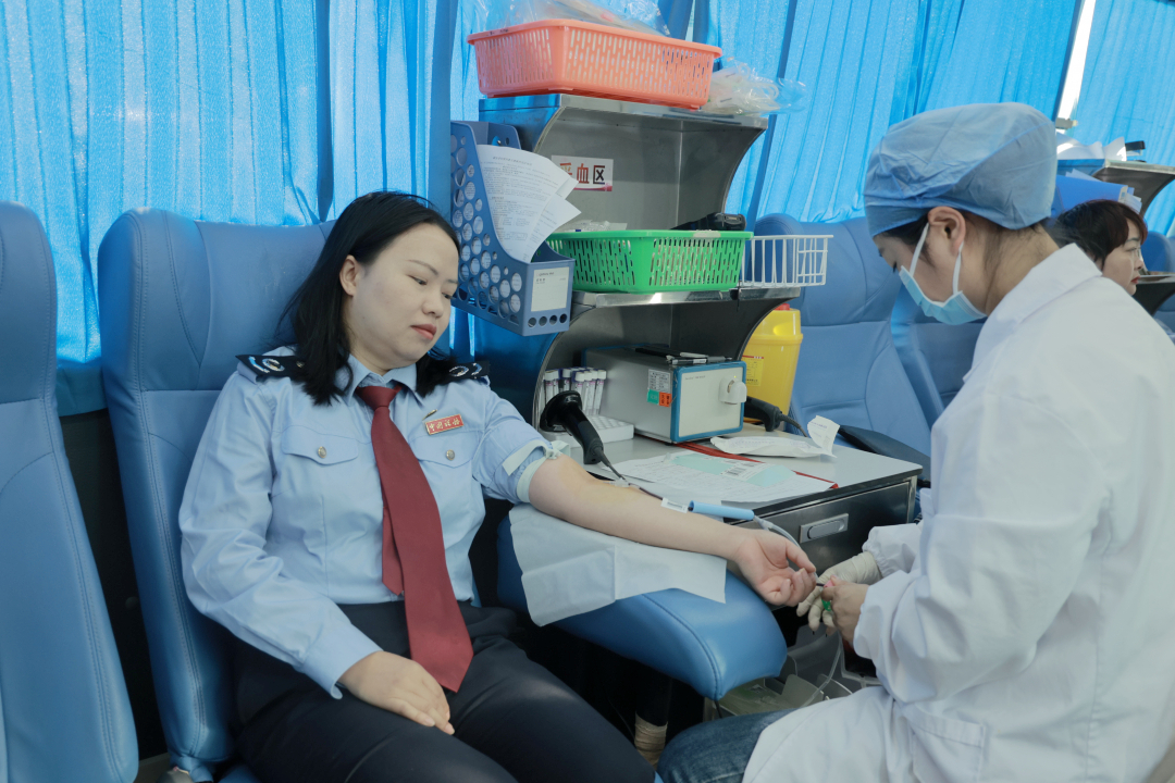 “能尽自己的一点绵薄之力,帮助有需要的人,我感到非常自豪!我会一直坚持下去”国家税务总局望谟县税务局青年干部龙亚林说道。龙亚林是献血队伍里面的“熟面孔”,她神情自若,熟练地配合护士的操作,还不忘给身边的同事加油打气。