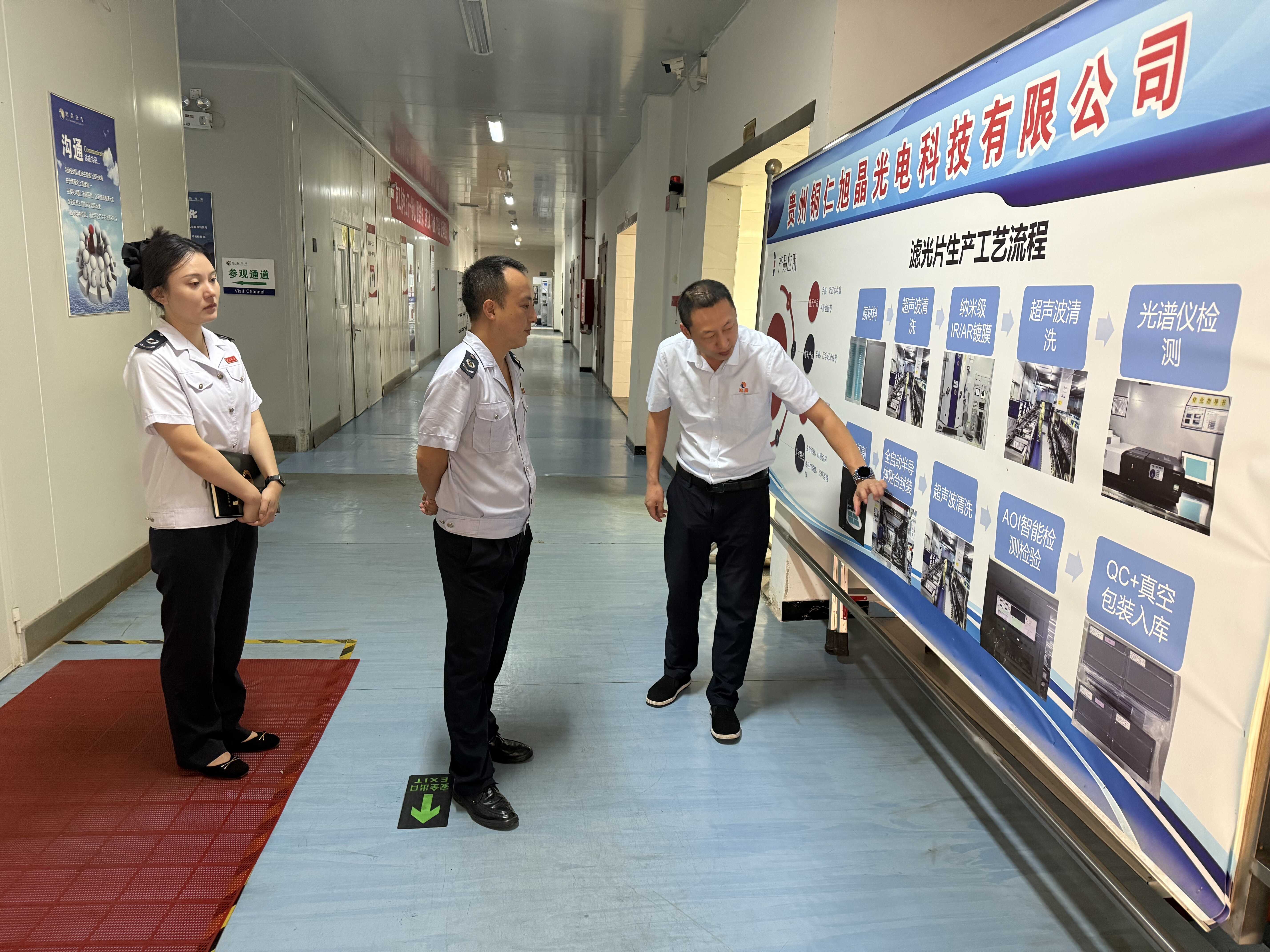 罗进一行实地走访园区内企业贵州铜仁旭晶光电科技有限公司,与企业领导、工作人员进行参观交流。调研组详细了解企业生产经营现状、市场开拓进程、企业预备上市进程及未来发展规划,认真倾听企业发展诉求,围绕产品多样化、产业扩展等议题深入探讨企业税收规划,积极为企业高质量发展提供税收优惠政策支持。针对企业提出的个性化涉税诉求,调研组现场逐一回应。