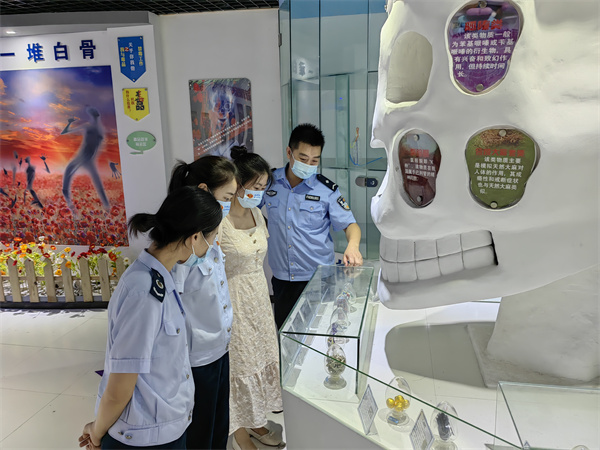 讲解员深入浅出的讲解了毒品所带来的危害,并以接触到的典型例子,深刻剖析了毒品对个人、对家庭、对社会带来的沉重伤害。