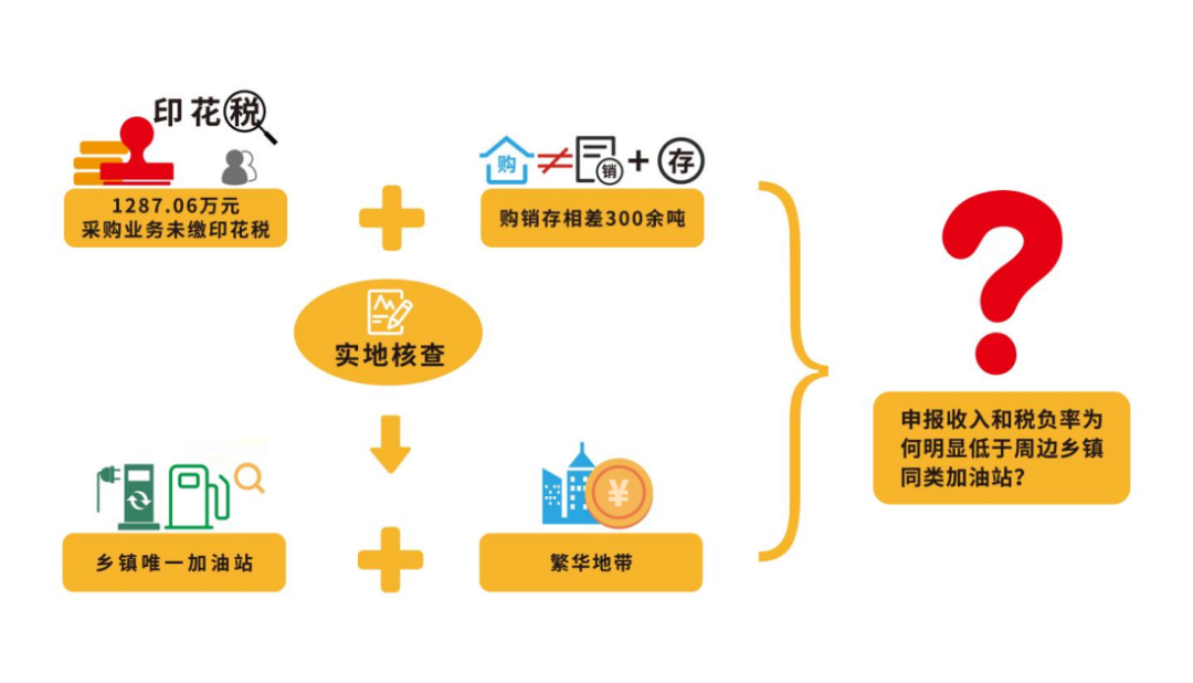 前期,铜仁市税务局稽查局通过税收大数据分析发现,2020年至2022年期间,鱼塘加油站购进油品发票金额达1287.06万元,却从未就该采购业务申报缴纳印花税,这一明显的税费缺失情况引起税务部门的关注。