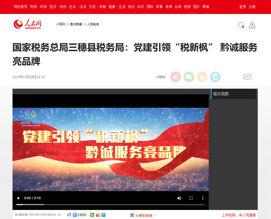 人民网刊发“黔税新枫”模块相关宣传视频
