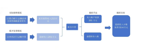 经核算,易达智成公司通过个人账户收款、低价开票等方式隐匿销售收入,少缴增值税、企业所得税等税费款共计33.4万元。