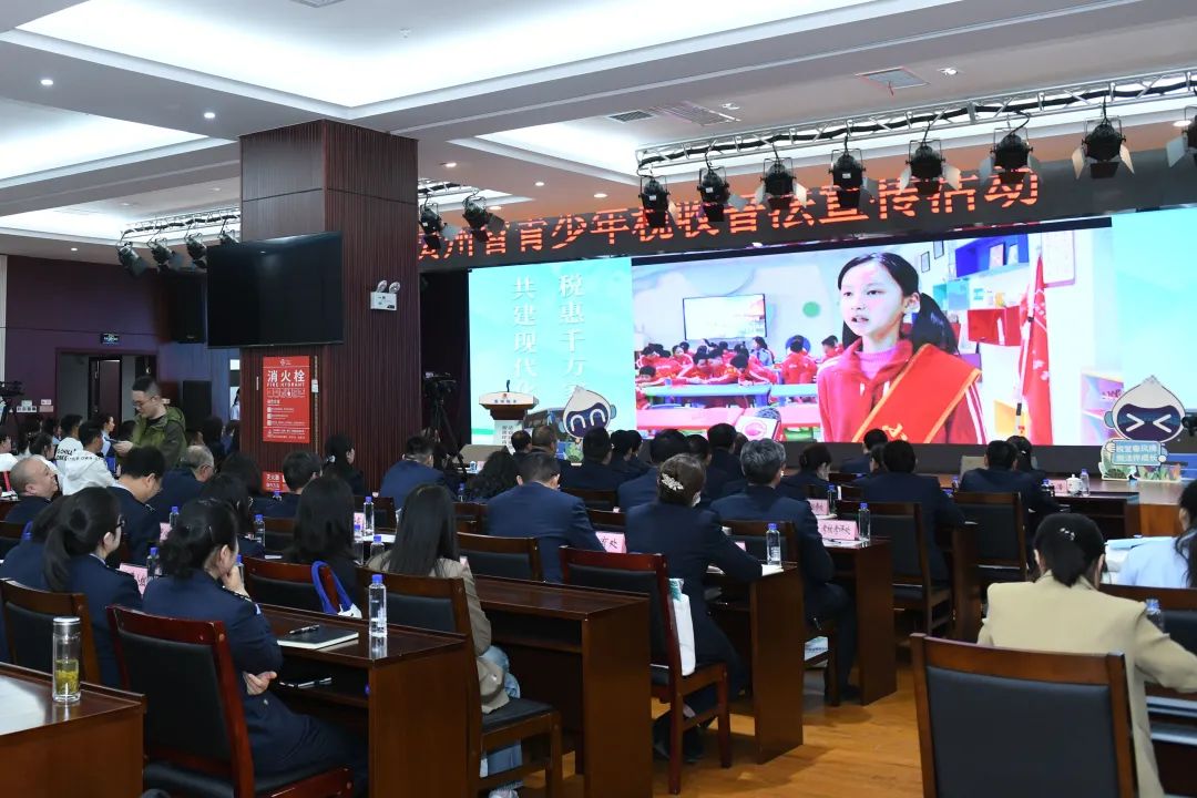 在省税务局主会场,贵州师范学院商学院的大学生税法宣传志愿者带来税收普法宣传的分享,贵阳市税务局宣介了税宣文创产品——阳阳公仔;在遵义市朝阳小学,遵义市税务局青年税务干部及朝阳小学20名小学生共同参与制作税务剪纸;在福泉市税务局全国普法教育示范基地,税务干部带领学生们上了一堂以“税润童心 筑梦未来”为主题的校园普法课,并组织大家参观全国普法教育示范基地;在望谟县实验高中,全国最美教师刘秀祥老师担任税法宣传志愿者,与同学们共同学习税法;在贵州财经大学票据博物馆,讲解员向学生们讲解了票据历史。