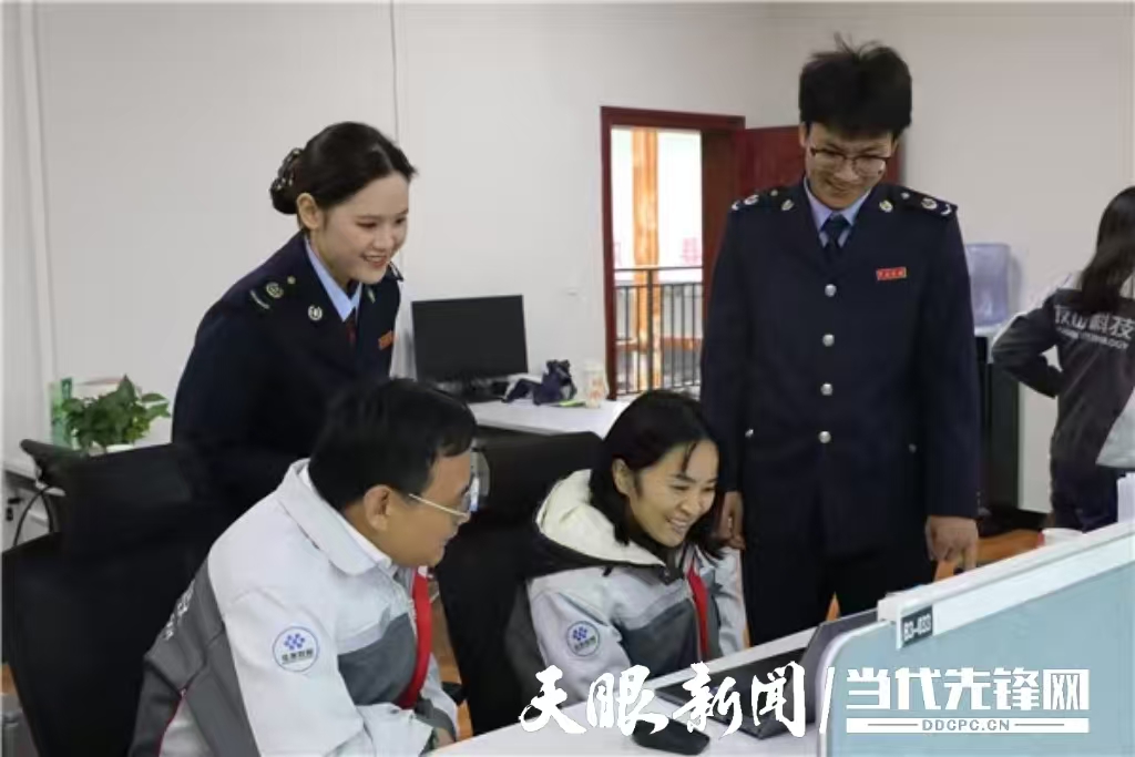 税务干部走进磷煤一体化项目负责企业,为友山新科技能源有限公司上门答疑,送上《全周期税费服务清单》。(胡珊 摄)