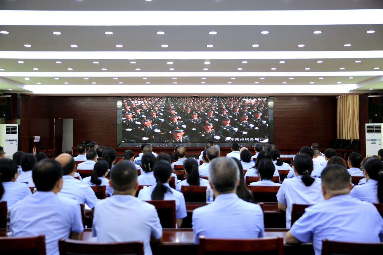 国之大事,在祀与戎!今天在北京天安门广场举行纪念中国人民抗日战争暨世界反法西斯战争胜利80周年大会,包括检阅部队,彰显了中国人民对历史的尊重,也昭告了我们对和平的捍卫。铭记历史不是为了延续仇恨,而是为了更好地开创未来。为了共同弘扬伟大爱国主义精神、伟大抗战精神,汲取开创未来的智慧和力量,9月3日,黔东南州税务系统组织开展集中观看纪念中国人民抗日战争暨世界反法西斯战争胜利80周年大会相关活动,通过这场视听盛宴,回望历史,见证今朝,坚定“正义必胜!和平必胜!人民必胜!”的伟大真理,凝聚同心同向同行的奋进共识。