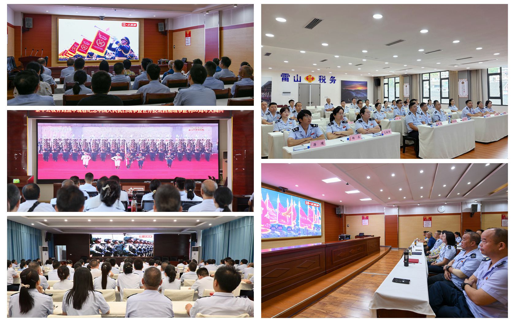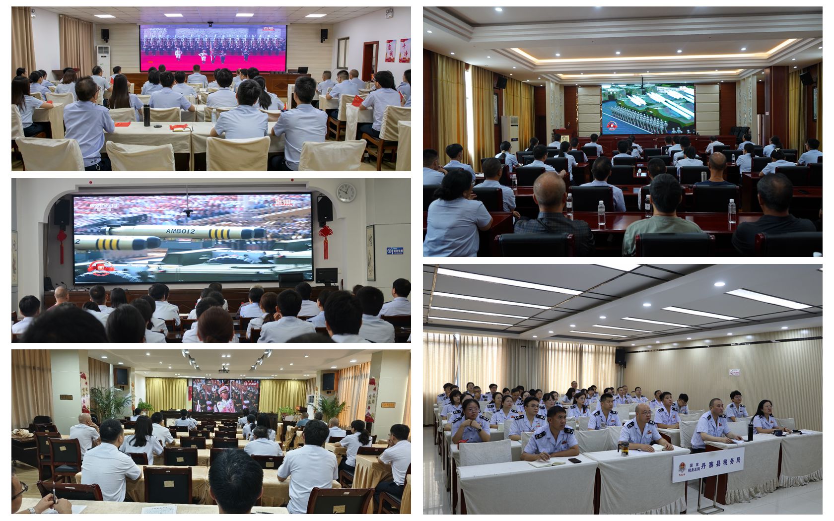 上午9点,各单位17个分会场,税务干部以及离退休党员代表身着税务制服、精神抖擞地早早集中在屏幕前等待观看“9.3大阅兵”直播。