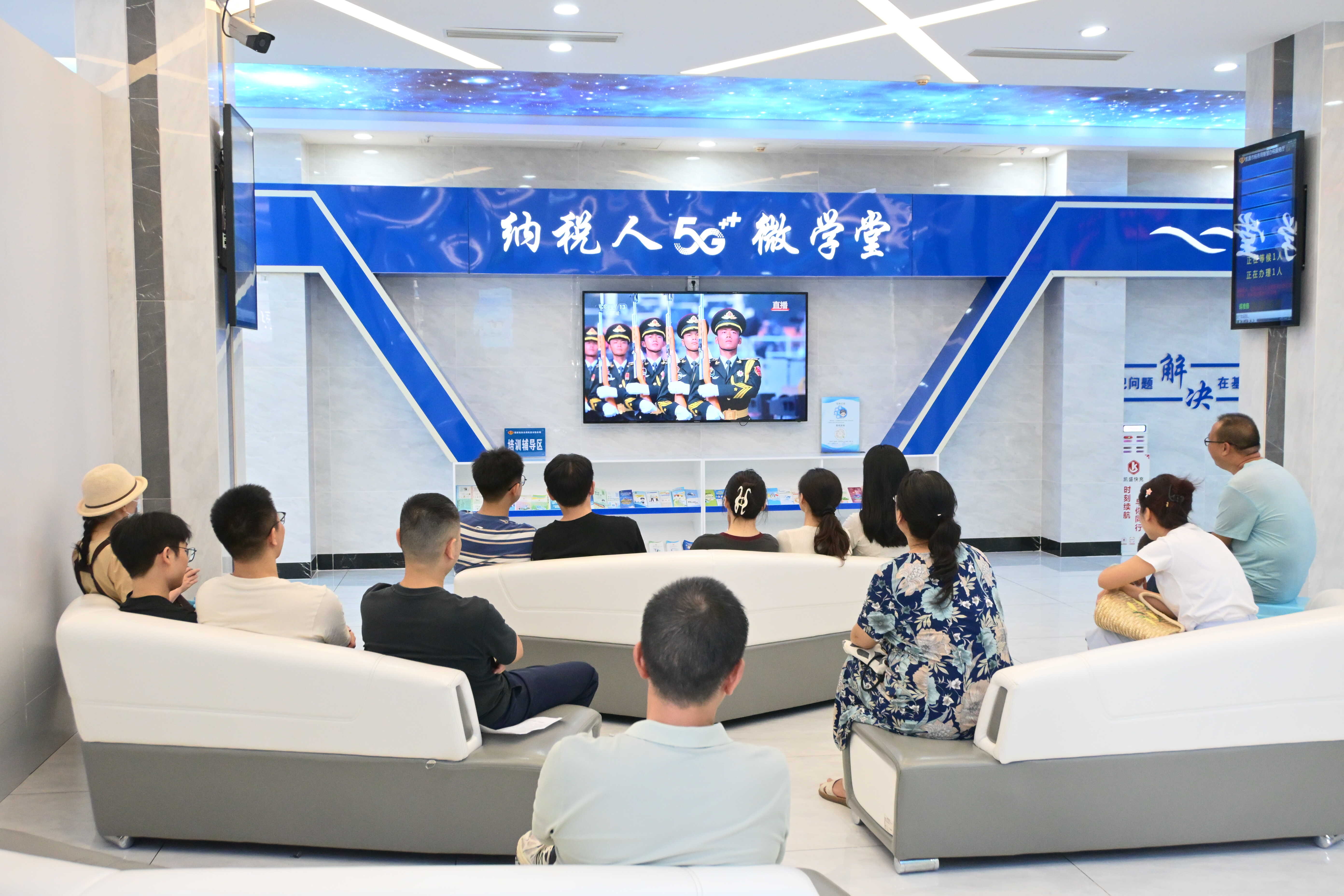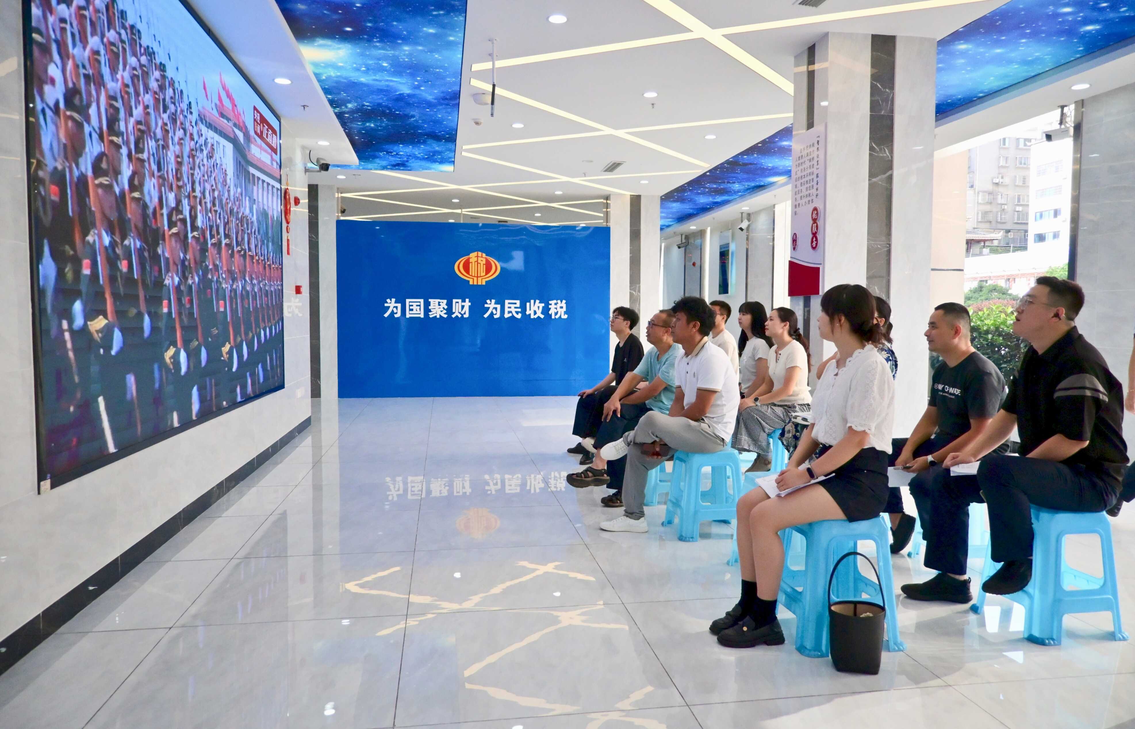 (图为进厅办税人员共同收看“9.3大阅兵”直播)