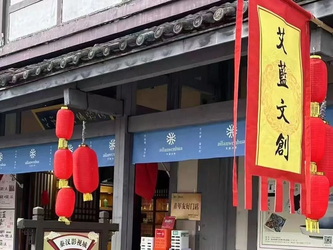 走进都匀秦汉影视城的贵州艾蓝文化创意有限公司文创门店,琳琅满目的文创产品映入眼帘,蓝靛染织的民族发饰、手工打造的苗银耳环、精巧玲珑的刺绣挂坠……浓郁的民族风情扑面而来,吸引了不少游客驻足观赏。