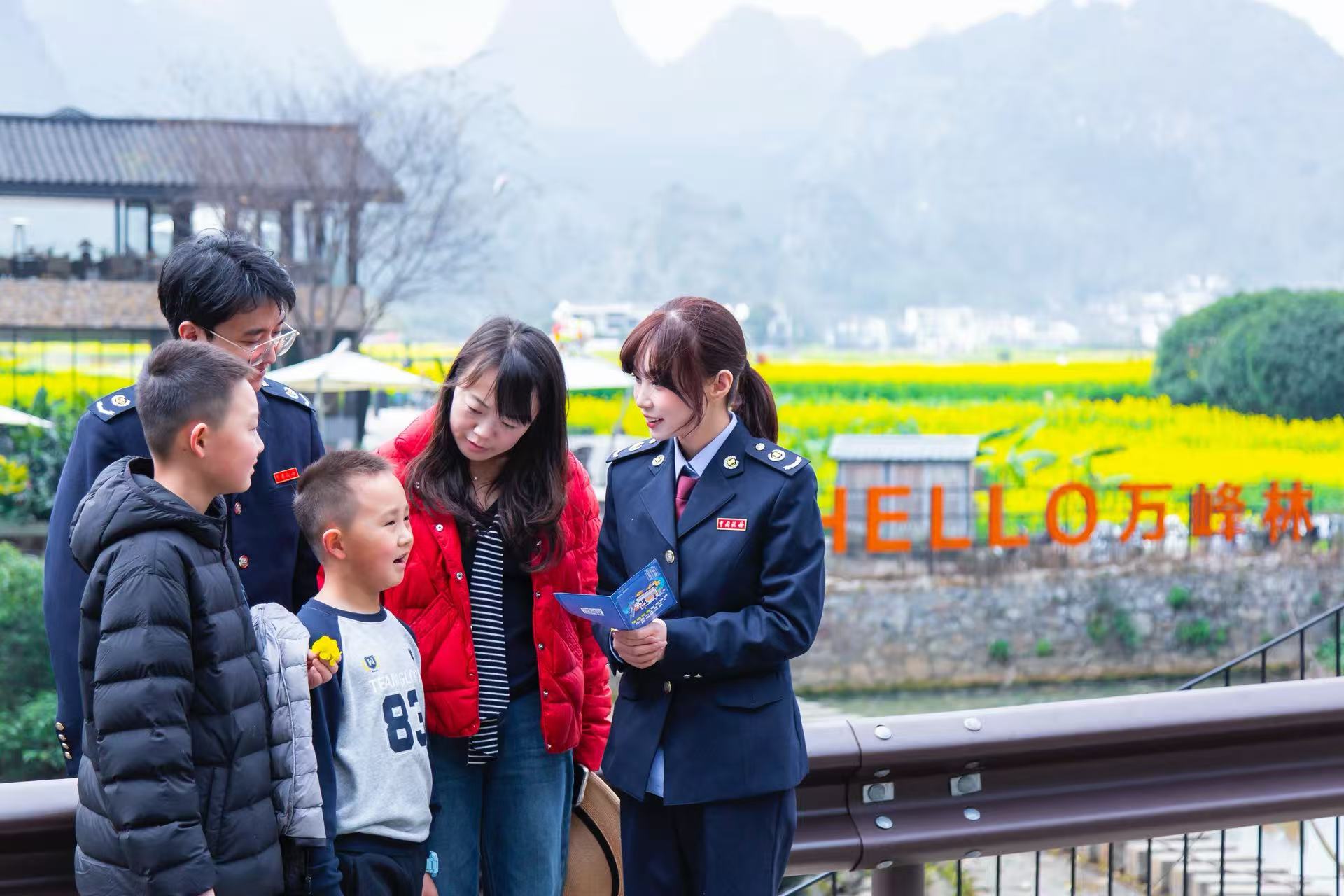 节日期间,万峰林景区人气爆棚,单日接待量突破 15 万人次,实现旅游综合收入 1.08 亿元。兴义市税务局紧扣文旅消费热潮,组建“青年税费服务队”,深入景区、峰潮集市等人流密集区域,面向游客及商户开展税费政策宣传,重点讲解个人所得税汇算、子女教育等专项附加扣除、社保费缴纳等民生热点政策,把税费服务送到游客身边、商户心坎上。