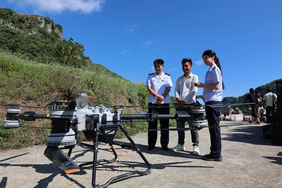 税务干部正在了解贵州迅航科技有限公司的大疆T100植保无人机作业情况,宣传低空经济相关税收优惠政策。税务部门通过精准服务推动政策落地,助力企业乘势发展。李想 摄
