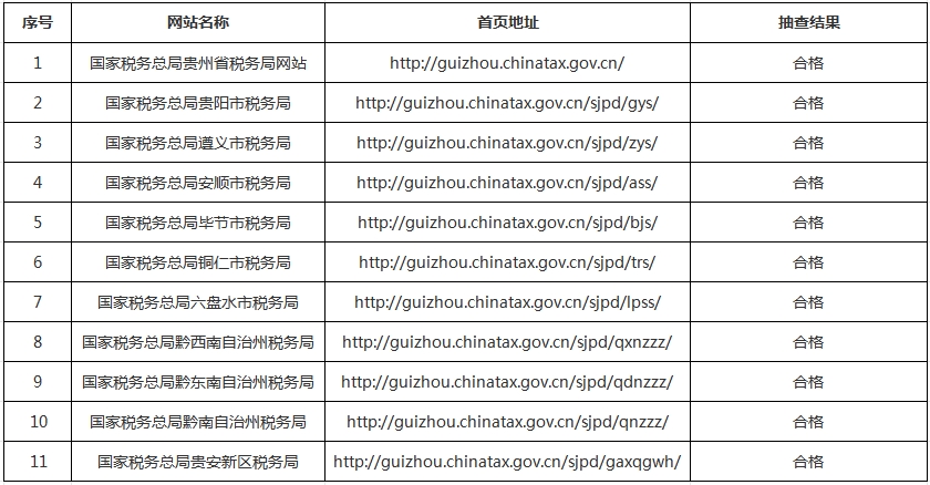 2025年第四季度贵州税务网站抽查情况表
